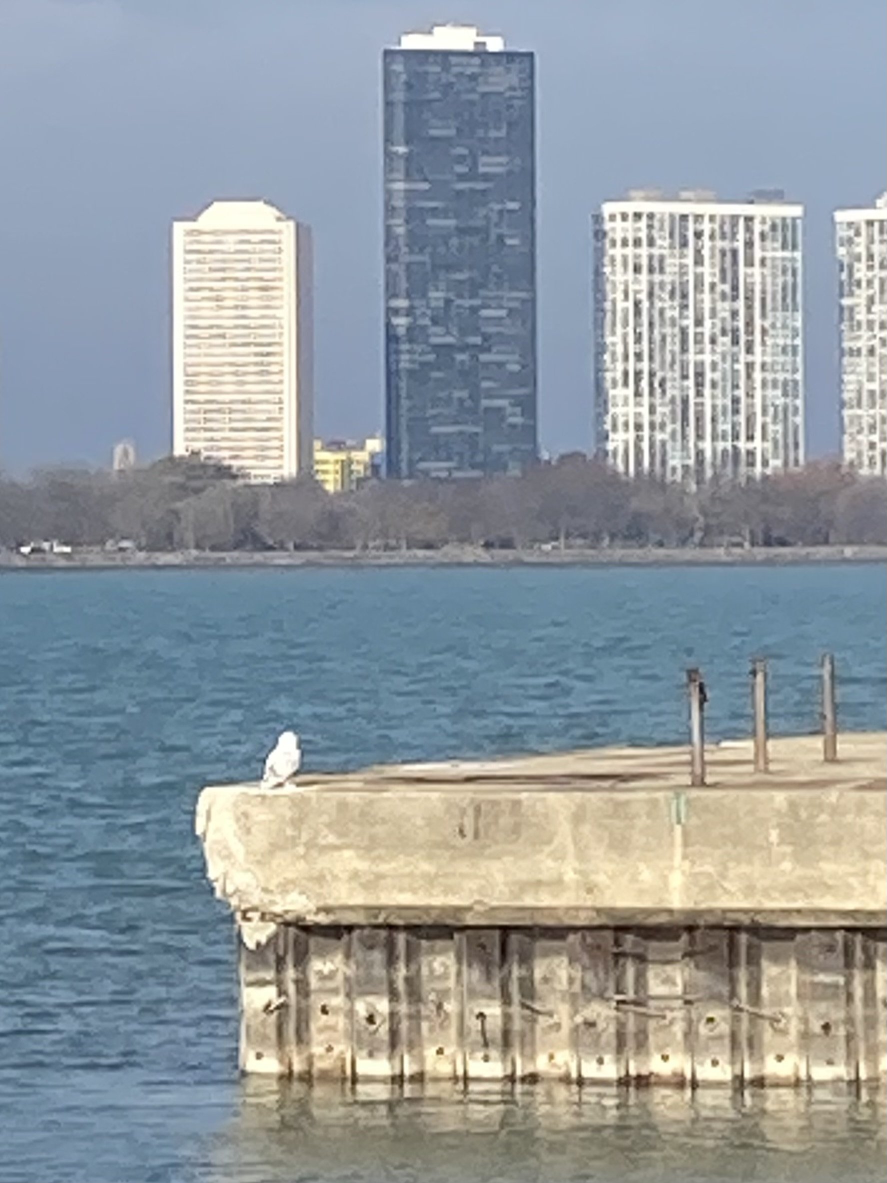 As I jog further, I see a clump of people in puffy coats half way to the end of the break wall/pier. As I approach they stare me down, but I see their long 2 foot camera lenses and I assume they are stoic photographers who might lack a knack for social cues like nodding or hello-ing at people on great lake break wall/piers as they jog by in layers. But no. One turns sharply and with a smile on his lips but the devil in his eyes says, “There’s two snowy owls at the end of the pier there.” And I squint the hundred feet and say, “Oh cool, I’ll jog slower so i don’t disturb them” … and they stare harder and lean in. Then one thrusts binoculars at me with a frown and says “Want to see?” I say “Sure” and I look. There, at the end of the break wall/pier just sitting on the cement, are two snowy owls. And they are magnificent. One looks just like Harry Potter’s white speckled owl and so I say, “that one looks like Harry Potter’s white speckled owl!” but nobody finds this interesting or fun. … They keep staring me down. And I start to fear for my life. Now this whole time, I will say that I had that parenting podcast pumping into my ear and this may have slowed my processing. But I have the feeling that if I take one step further, someone will jerk me back by the saggy back of the kayak jacket I’ve never kayaked in. The passive aggression has reached its height and I stammer, “I guess I’ll turn around here,” at which point all their shoulders relax as they lift their 2 foot lenses back up, point them at the owls, and take pictures.
